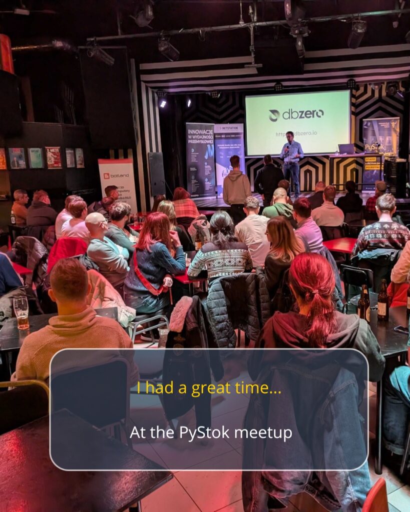 The first speaker was Wojciech Kozłowski, who introduced a project called dbzero. It is an open-source project created right here in our city! It’s a new way to handle data in Python.